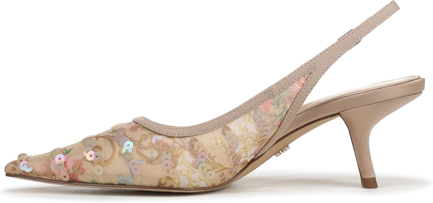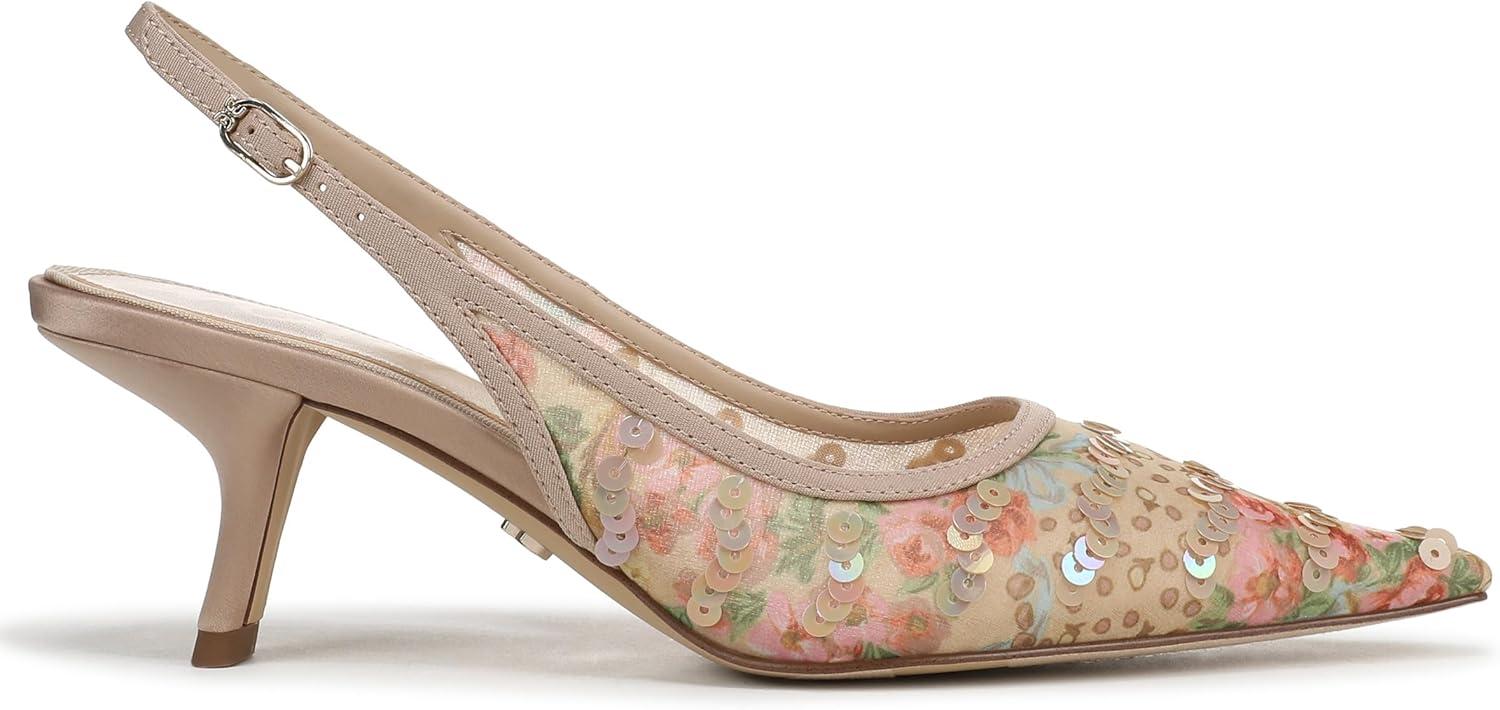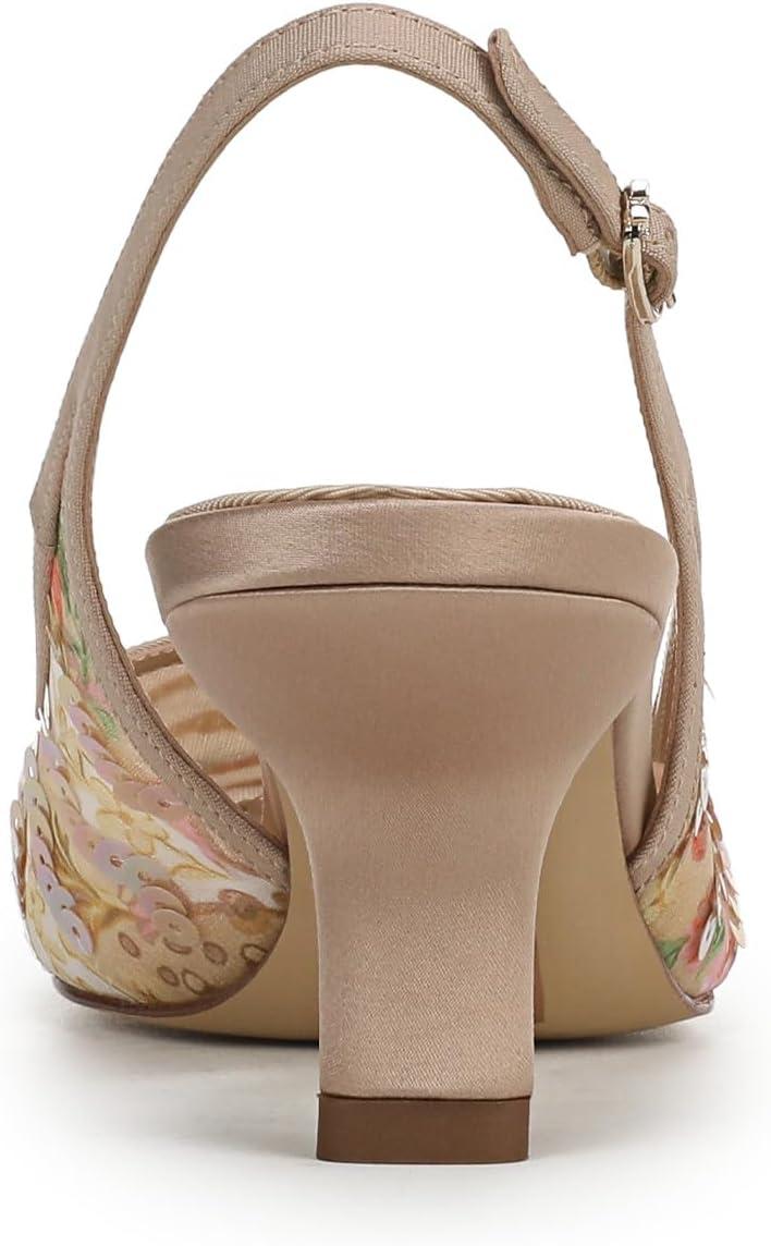 A pointed toe and sleek kitten heel bring sophisticated edge to this slingback pump. The Bianka delivers a polished finish with its sculpted silhouette and adjustable buckle—an iconic dress shoe designed for both statement style and refined occasions. Heel Height: 2.375 in. Toe: Pointed. Closure: Buckle. Material: Fabric and Other. Insole: Foam.