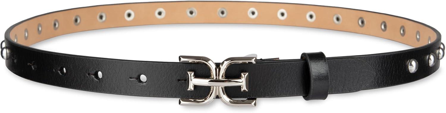 Sam Edelman womens Double-e Plaque Logo Buckle Skinny Fashion Trouser Belt(Black Studded)