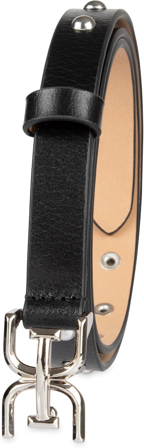 imageSam Edelman womens Doublee Plaque Logo Buckle Skinny Fashion Trouser BeltBlack Studded
