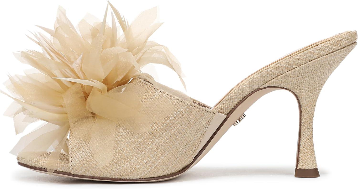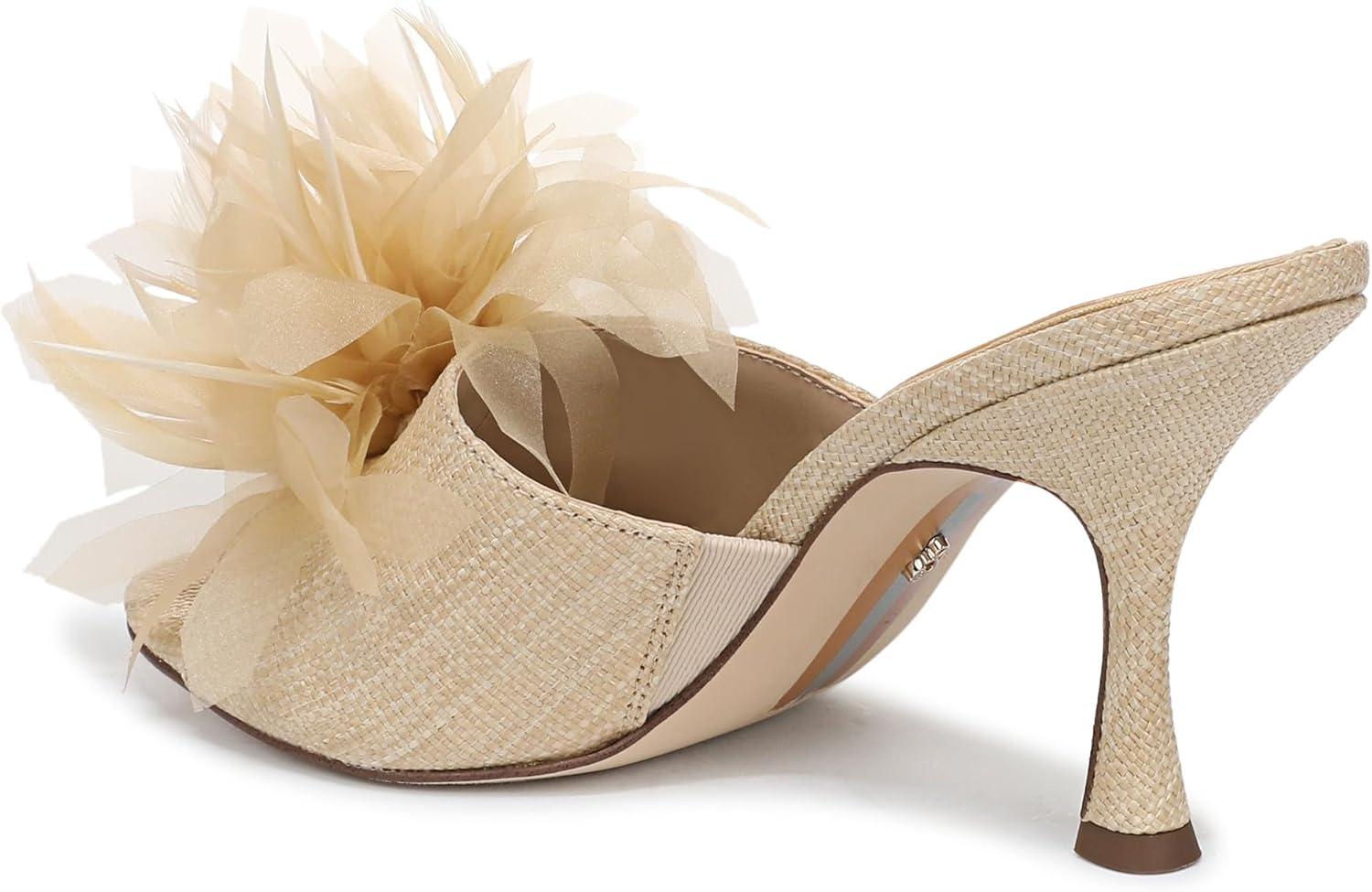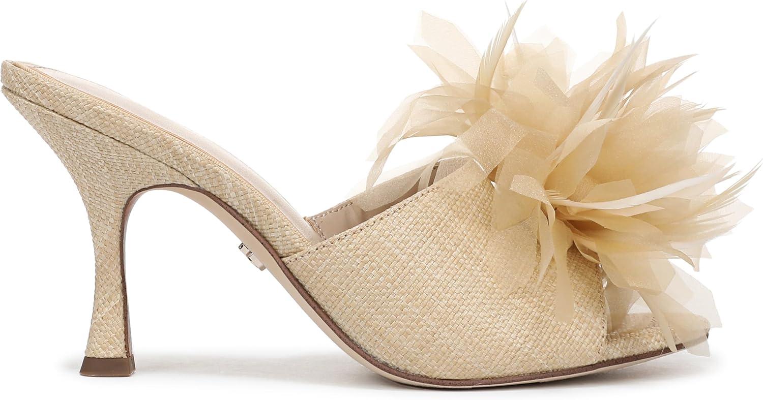 Modern sophistication meets playful detail in this Embellished Mule Sandal. Sculpted with a round toe and stiletto-inspired stiletto heel, its striking floral embellishments set the stage for standout style at any occasion. An of-the-moment choice for women's floral embellished shoes and a refined Mule Dress sandal. Heel Height: 3.375 in. Toe: Pointed. Closure: Slip-on. Material: Fabric and Other. Insole: Foam.