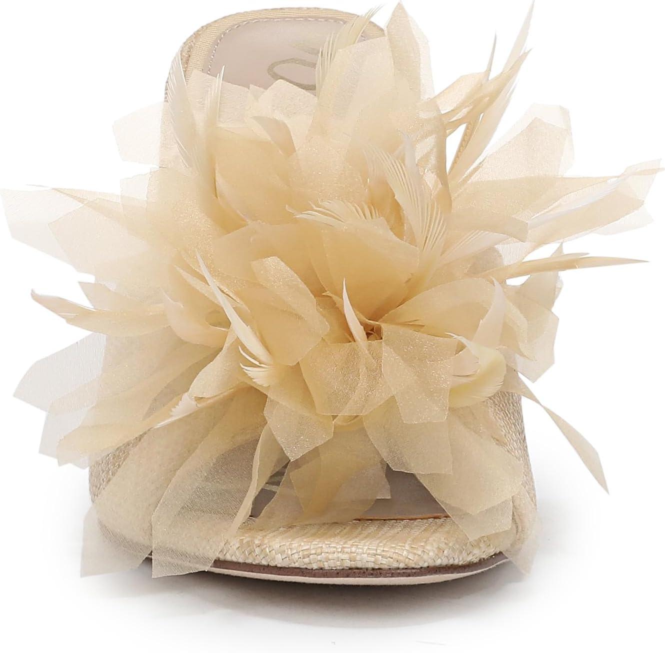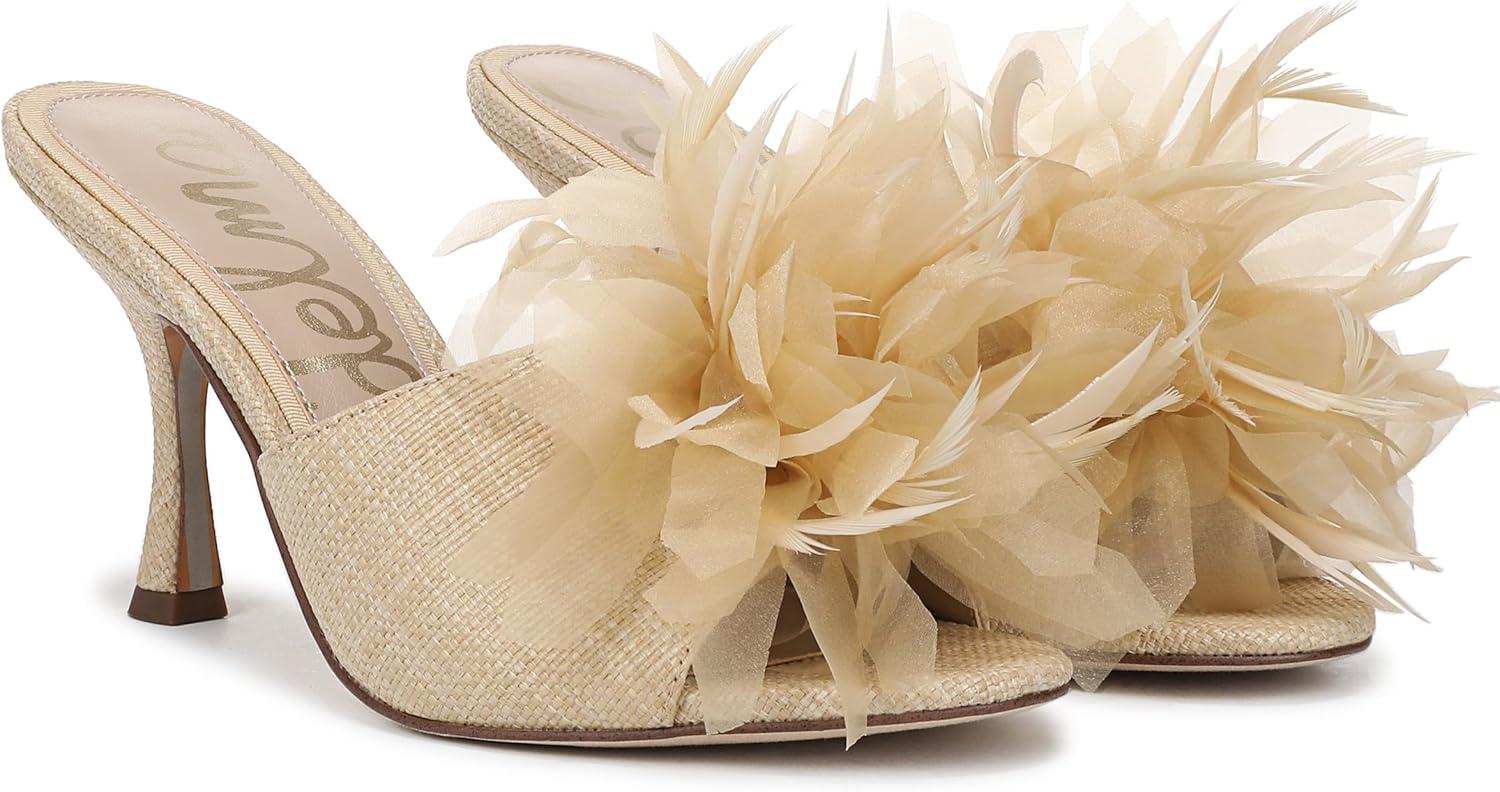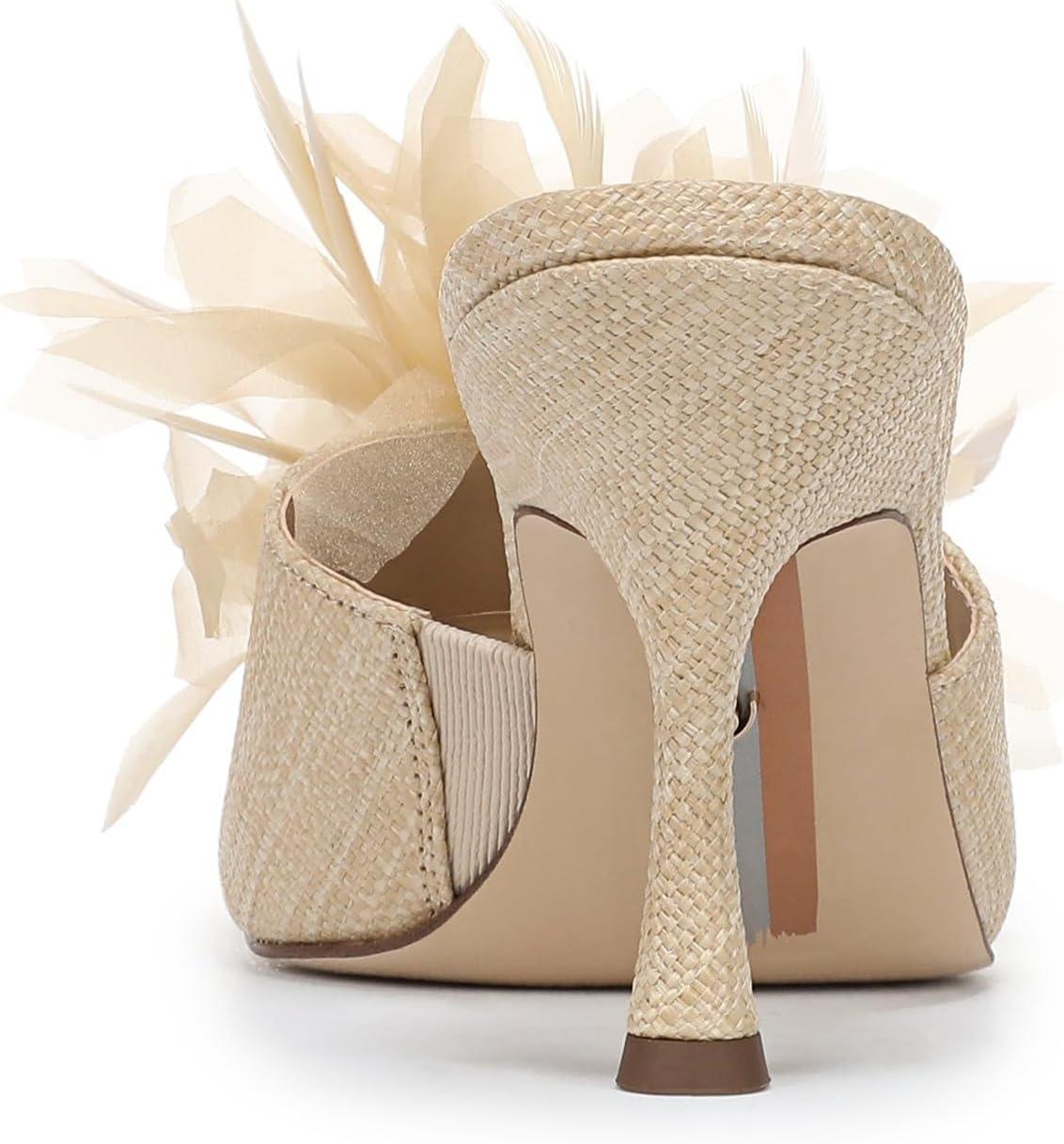 Modern sophistication meets playful detail in this Embellished Mule Sandal. Sculpted with a round toe and stiletto-inspired stiletto heel, its striking floral embellishments set the stage for standout style at any occasion. An of-the-moment choice for women's floral embellished shoes and a refined Mule Dress sandal. Heel Height: 3.375 in. Toe: Pointed. Closure: Slip-on. Material: Fabric and Other. Insole: Foam.