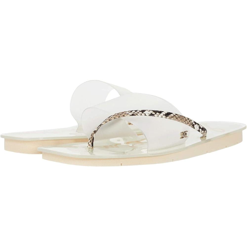 imageSam Edelman Womens Yaro Heeled Sandal Soft Nude LeatherClearBlackWhite Frosted VinylPython Print